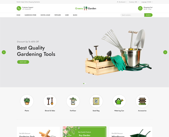04 demos available with different styles, for your choice. Greens Garden is one of the best
